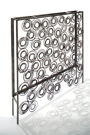 Spring Firescreen - metal springs, steel frame and glass panel