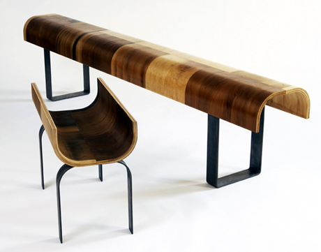 public seating, bent plywood furniture, metal - designed and fabricated by Susan Woods