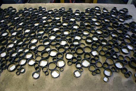 Steel tubing and stained glass partition for private Tribeca apartment - 11' x 7' - in progress