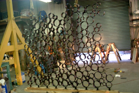 Steel tubing and stained glass partition for private Tribeca apartment - 11' x 7' - in progress