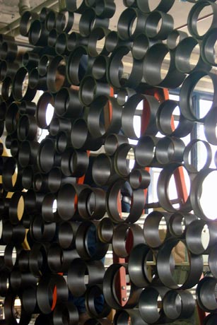 Steel tubing and stained glass partition for private Tribeca apartment - 11' x 7' - in progress