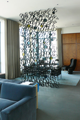 Steel tubing and stained glass partition for