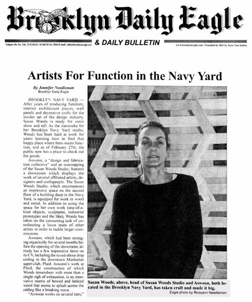 "...Aswoon, which had been emerging organically for several months before the opening of the showroom, already has a few impressive items on its CV, including the raved-about drop ceiling in the downtown Manhattan super-club, Plaid."
